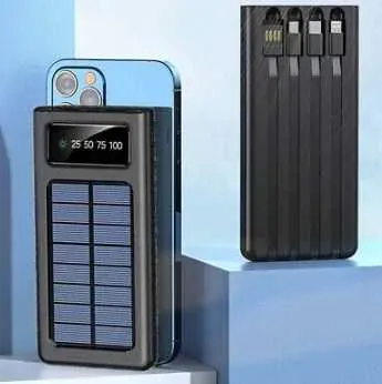 Batería de emergencia GTP-520 de 10000mAh de Gratthink en color negro, con cargador solar para tu celular. Aprovecha la energía renovable y la tecnología sostenible con este accesorio móvil imprescindible.