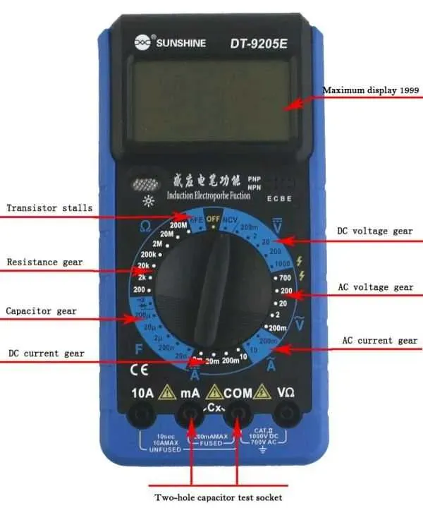 MULTIMETRO TESTER DIGITAL DT-9205E SUNSHINE