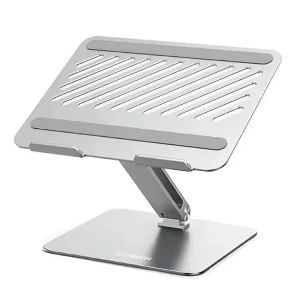 La base para laptop UGREEN LP339 plateada es ajustable y compatible con laptops de 13 a 17.3 pulgadas. Mantén tu laptop ergonómicamente elevada para una mejor postura y ventilación. Ideal para trabajar cómodamente por largas horas.