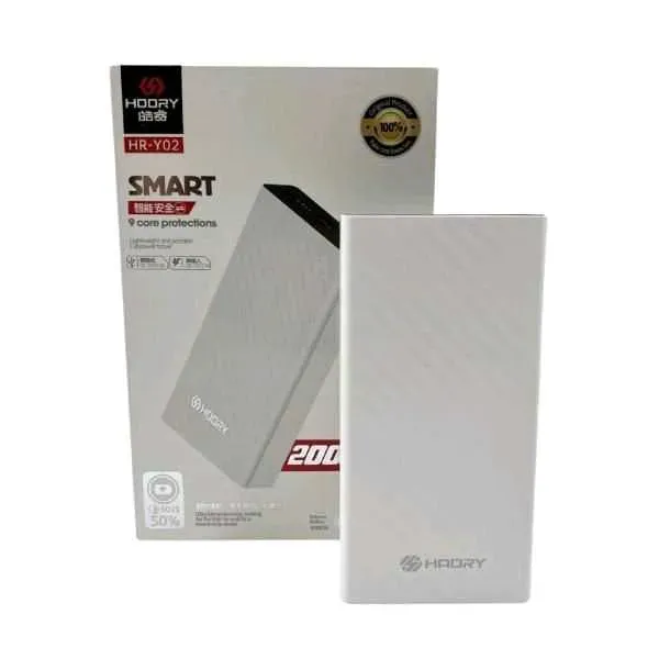 La batería de emergencia Power Bank Y02 Hoory Blanco con capacidad de 20000 mAh es la solución perfecta para mantener tus dispositivos cargados en todo momento. Diseño elegante y compacto que te brinda la energía necesaria cuando más la necesitas.