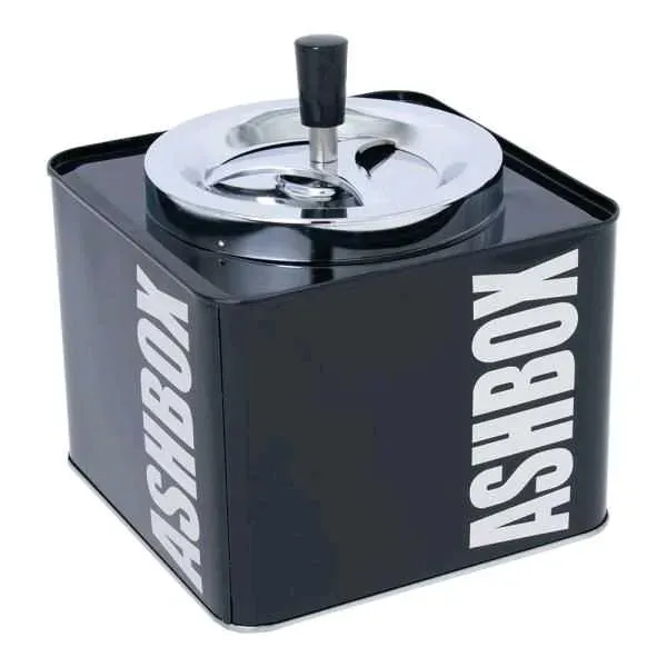 Estos ceniceros giratorios de metal Ashbox de Fujima tienen una forma de cubo de metal liviano y una tapa especial que gira y elimina la ceniza. Simplemente presione el asa en la parte superior para girar y bajar la bandeja interior, depositando la ceniza en la base y fuera de la vista. La parte sup...