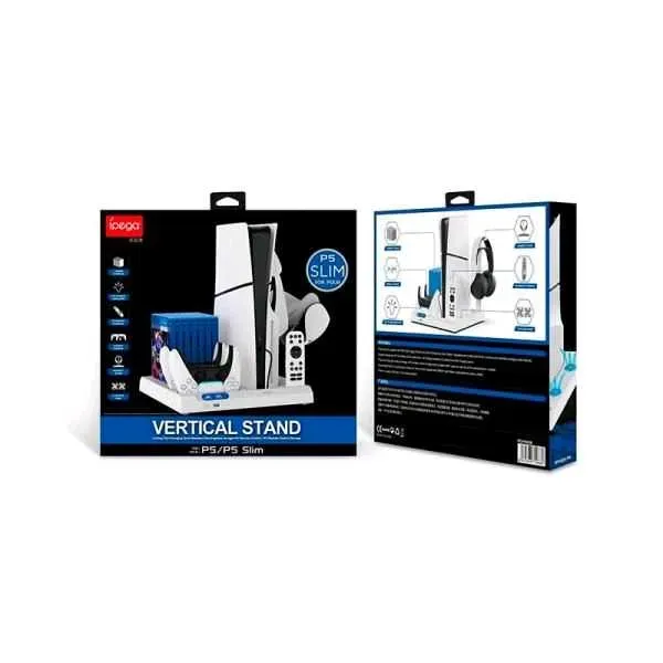 Estante cargador para PlayStation 5 en elegante color blanco, ideal para mantener tu consola organizada y cargar tus mandos de forma conveniente. Este accesorio es imprescindible para los amantes de los videojuegos. ¡Haz que tu experiencia de juego sea aún mejor con este estante cargador!