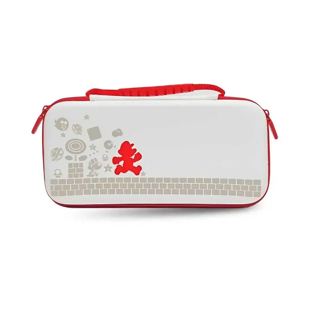 Protege tu consola Nintendo Switch con este estuche resistente a golpes con diseño de Mario Blanco. Mantén tu Nintendo Switch seguro y elegante mientras viajas o lo guardas. El estuche incluye un protector para mayor seguridad. ¡Hazte con este accesorio esencial para tu Nintendo Switch!