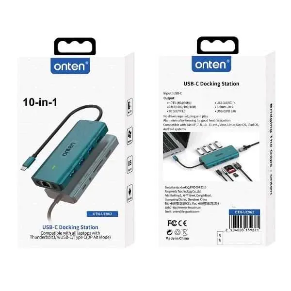 Concentrador USB de alta calidad con puerto Tipo C, modelo OTN-UC962 de la reconocida marca ONTEN. Convierte un solo puerto Tipo C en múltiples puertos USB para una mayor conectividad. Producto confiable y duradero, ideal para simplificar tus conexiones en Costa Rica.