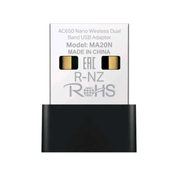 ADAPTADOR DE RED MERCUSYS MA20N(US) DUAL BAND USB 2.0 433 MBPS (5 GHz) + 200 MBPS (2,4 GHz)