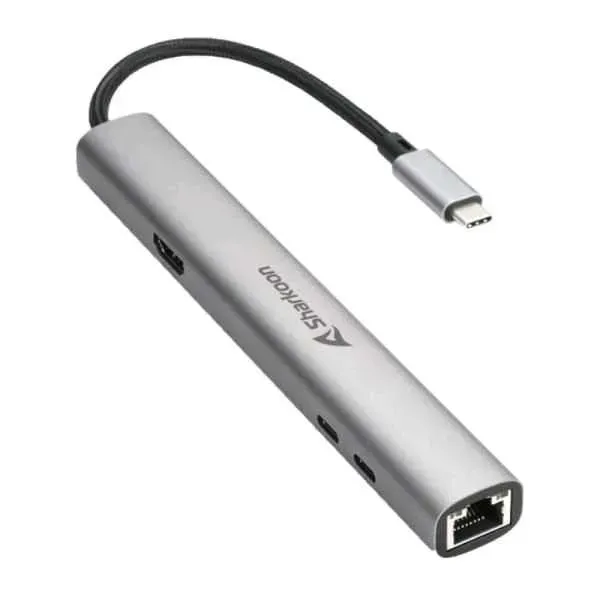 ADAPTADOR SHARKOON OFFICEPAL COMBO USB-C A USB-A Y USB-C CONEXIÓN HDMI Y RJ45 4044951040704 PLATEADO