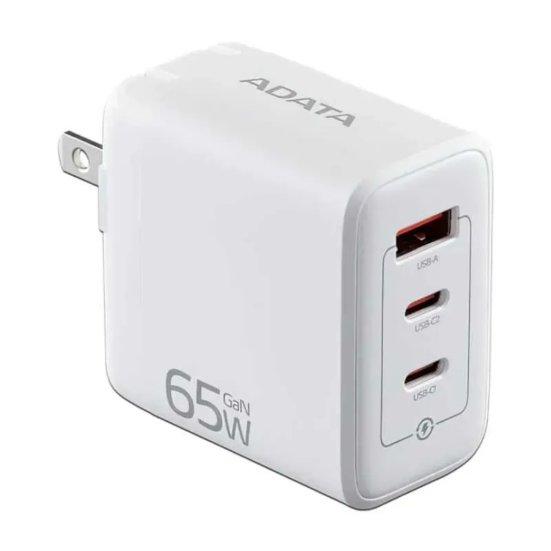 CARGADOR ADATA CHARGERU-0653-QCPDWH 65W 2 PUERTOS USB-C Y 1 PUERTO USB-A CARGA RAPIDA BLANCO