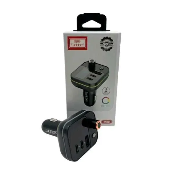 CARGADOR CUBO CARRO CON BLUETOOTH Y TRANSMISOR FM ET-M88 EARLDOM NEGRO