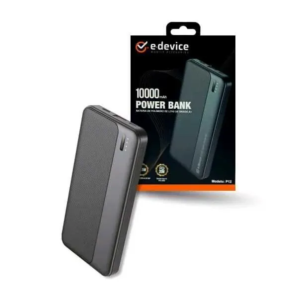 Obtenga energía portátil confiable con el Power Bank e-device P12 de 10000 mAh. Este cargador portátil recargable es perfecto para mantener sus dispositivos móviles cargados en movimiento. Con una batería externa de alta capacidad, nunca se quedará sin energía cuando más lo necesite.