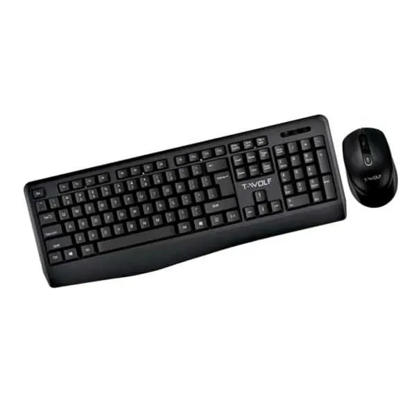 Conjunto de teclado y ratón inalámbricos TF 100 en elegante color negro, ideal para gaming. Este accesorio ofrece comodidad y libertad de movimiento. Disfruta de una experiencia de juego sin cables con este conjunto de alta calidad.